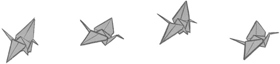 And she’s in one of the rooms downstairs too, along the corridor, but I can still see her, carefully folding a paper crane from coloured paper, her tongue sticking out in concentration.