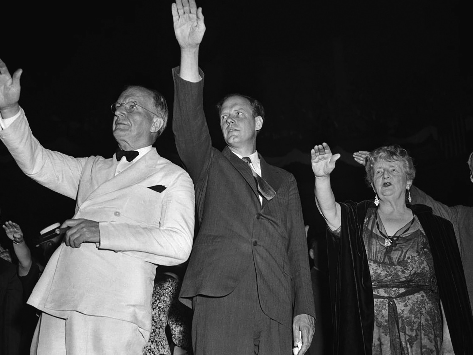 Senator Burton K. Wheeler (at left) and Charles Lindbergh (center) at an America First rally in New York City