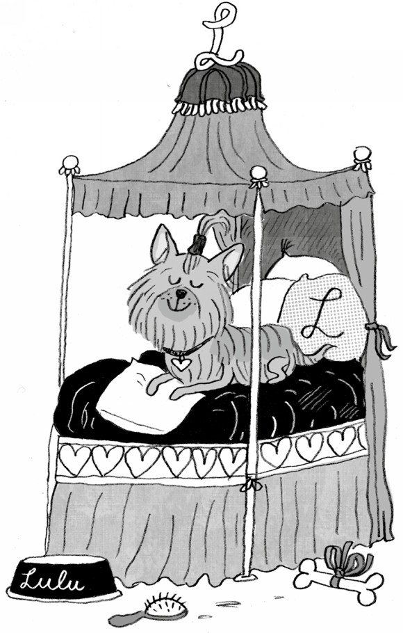 Lulu stretched her legs and rolled over onto her side. She wished she could stay in her cozy bed—which was made of memory foam, covered in pink satin sheets, and had a velvet canopy—for just a few more minutes. Lulu realized her bed must have been unusually fancy for a dog, because every time one of Jasmine’s friends came over, they’d say, “Lulu’s bed is nicer than mine!”