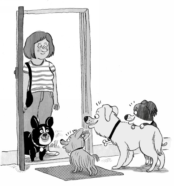 Napoleon wagged his tail as the other dogs barked their greetings. Erin said goodbye to Napoleon’s mom and turned her attention to the dogs.