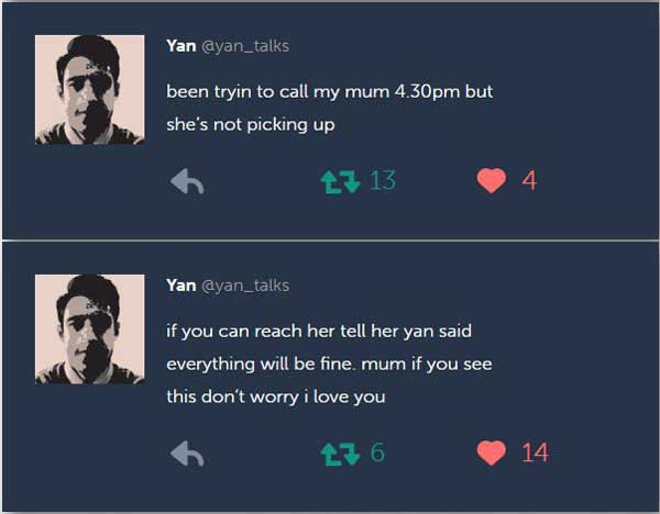 Yan’s mum had gone spare and then some when he finally made it home, leaping up from the couch with her eyes all puffy and her mouth open, making noises like he’d never heard before.